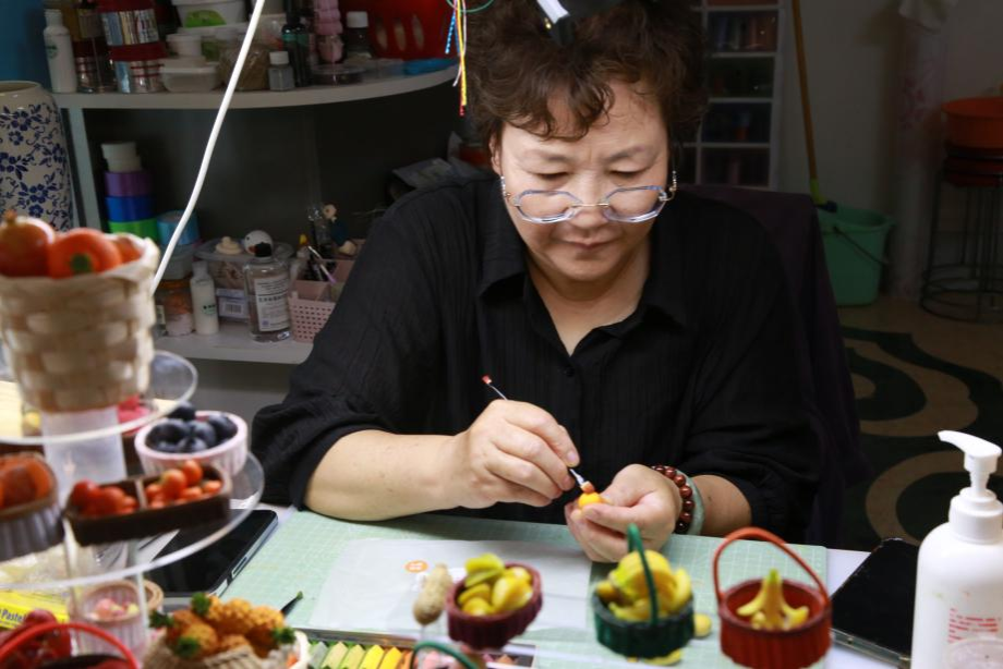 第二站,志愿者们来到达尔罕茂明安联合旗草原文化宫,在非遗面塑传承人罗老师的带领下共同欣赏精美的面塑作品,并亲手制作了面塑西瓜与藤编杯垫。一场面塑体验,让志愿者们在指尖的温度中感受到非遗传承的意义。
