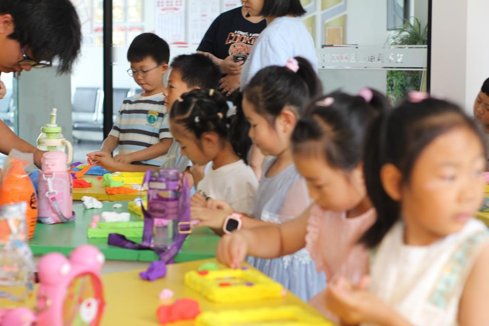 第三站,志愿者们来到达茂旗百灵庙镇艾不盖街社区党群服务中心,为社区小朋友开设手工泥塑相框和水拓丝巾两项兴趣课程,为小朋友们讲解非遗和美育相关知识,并带他们进行体验创作,在他们心中悄然播下了传承传统文化、守护民族瑰宝的种子。