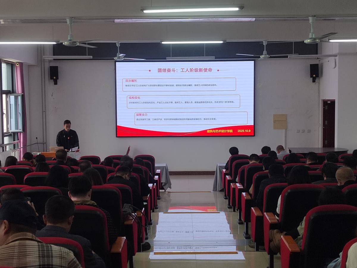全体教职工参与学习,该学习由学院副书记副院长、工会主席吴宇主持。