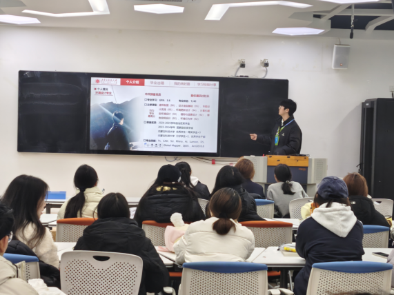 本次活动由22级环境设计赵天硕同学进行讲解,他分别就环境设计的专业学习方法和保研规划进行讲解,让同学们了解了环境设计专业的成绩提高技巧以及设计类竞赛的参赛技巧,让同学们对本专业的学习规划有了更清晰的认识。