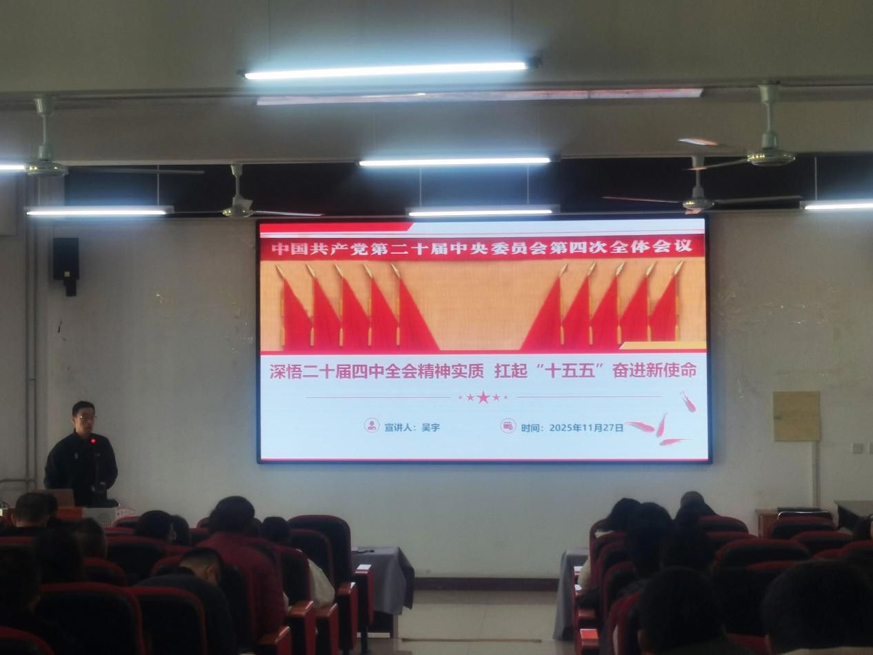 学习会上,吴宇书记详细解读了党的四中全会的内涵与特殊意义。二十届四中全会作为 “十四五” 收官、“十五五” 启幕关键节点的重要会议,聚焦 “十五五” 规划编制,为中国式现代化建设擘画了清晰蓝图。同时,他深入阐释了 “十五五” 时期在社会主义现代化进程中的承前启后地位,强调要把握发展机遇、应对风险挑战。